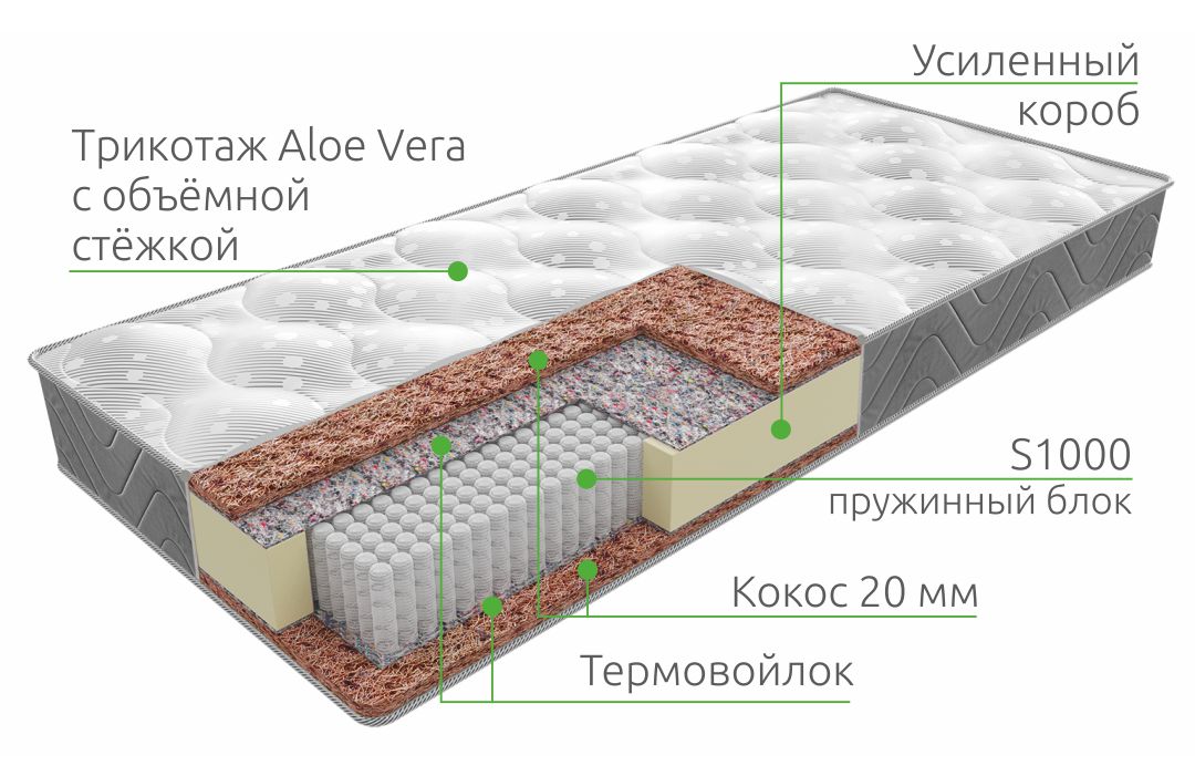 Жёсткий матрас Hard 2 на блоке независимых пружин S1000 выдерживает до 140 кг на одно спальное место. Пружины сверху и снизу изолированы от других слоёв термовойлоком, а короб по периметру усилен 10 см эластичной пеной Flex Foam. Двухсантиметровые плиты латексированной кокосовой койры придают жёсткость каждой из сторон.