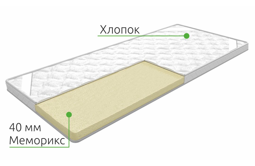 Тонкий наматрасник с эффектом памяти из меморикса 4 см высотой. Используется для понижения жёсткости и повышения индивидуальной комфортности. Только для ровных поверхностей!