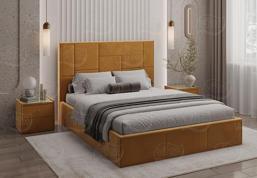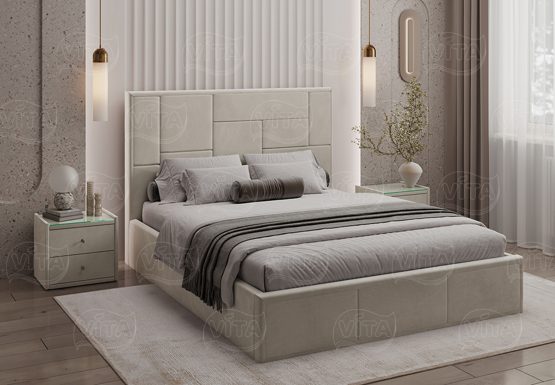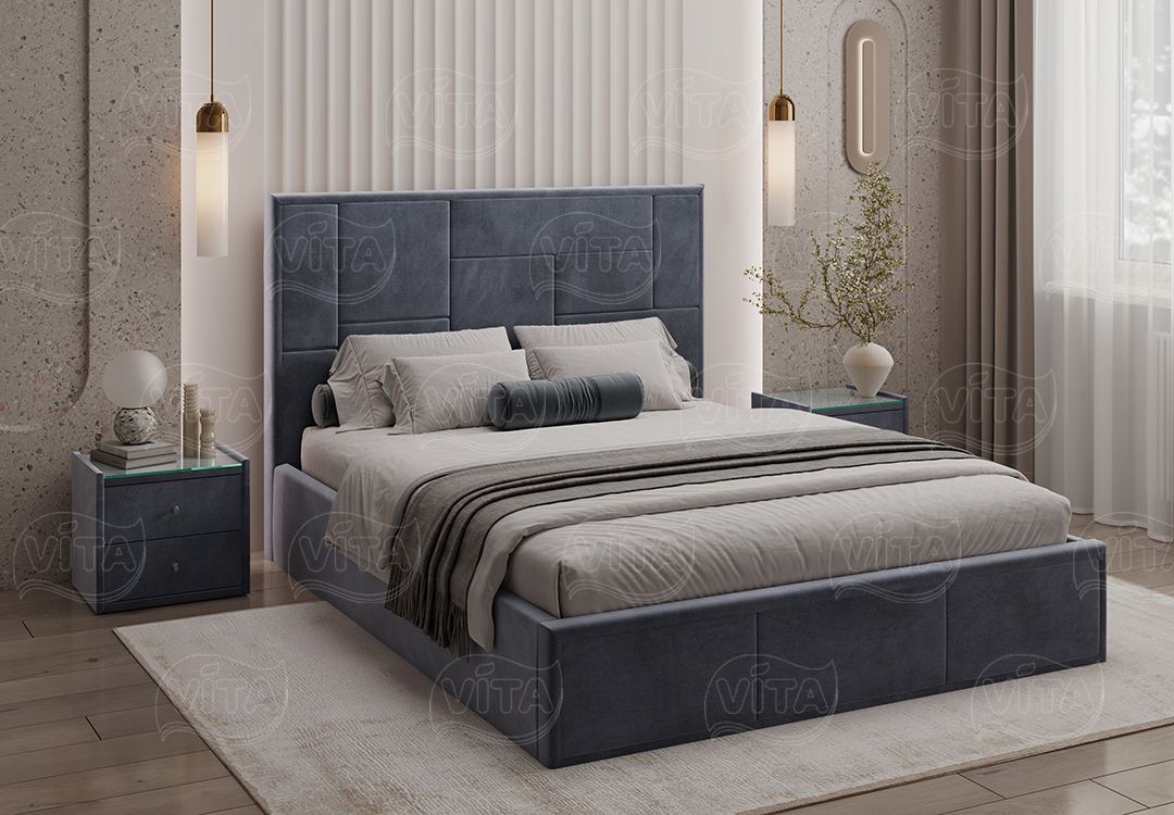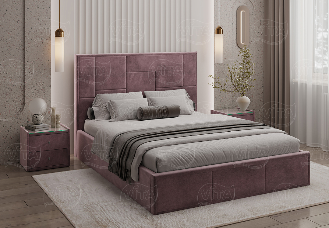 Кровать Адель с ортопедическим основанием и механизмом подъема. Изящный дизайн и отличное качество, которые слились в гармоничном тандеме. Асимметричный орнамент изголовья кровати зачарует своей грациозной простотой.