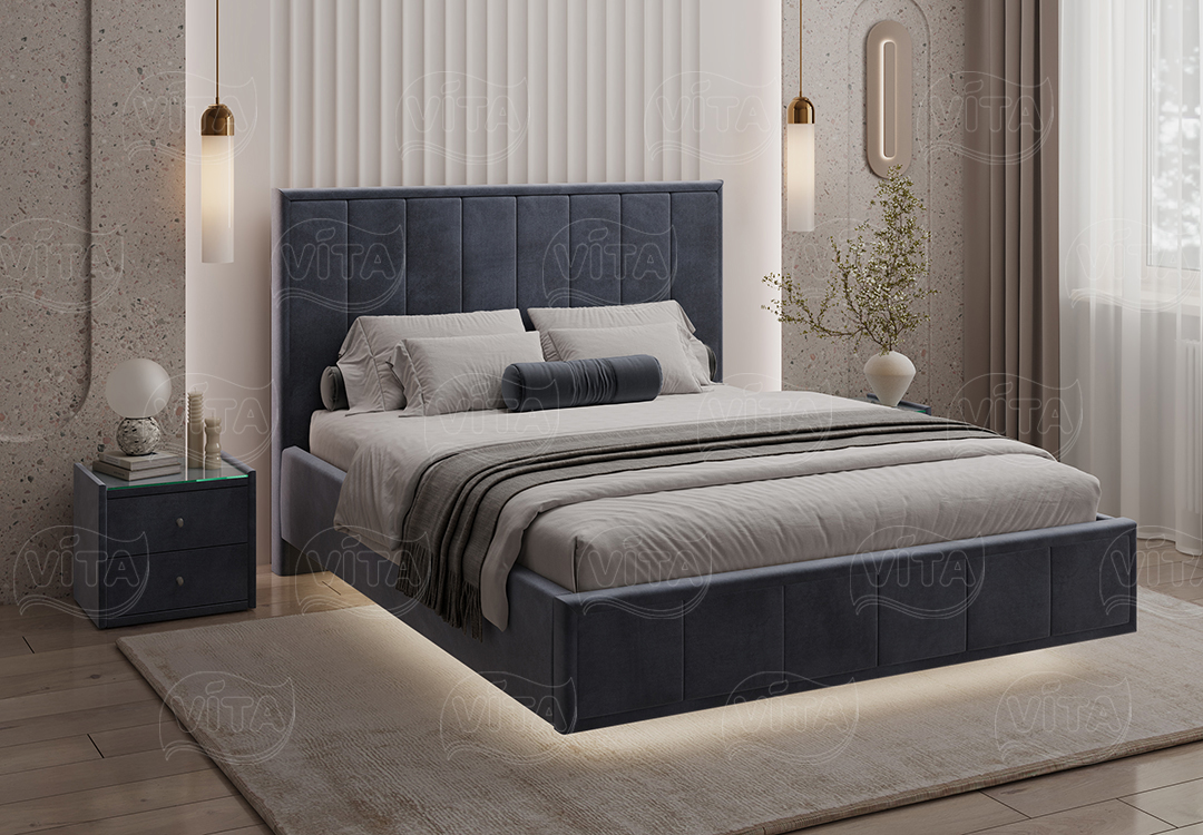 Кровать “Николь” парящая – воплощение стиля и роскоши. Вертикальная стежка на изголовье создаёт выразительный образ и визуально увеличивает пространство Вашей спальни по высоте.
